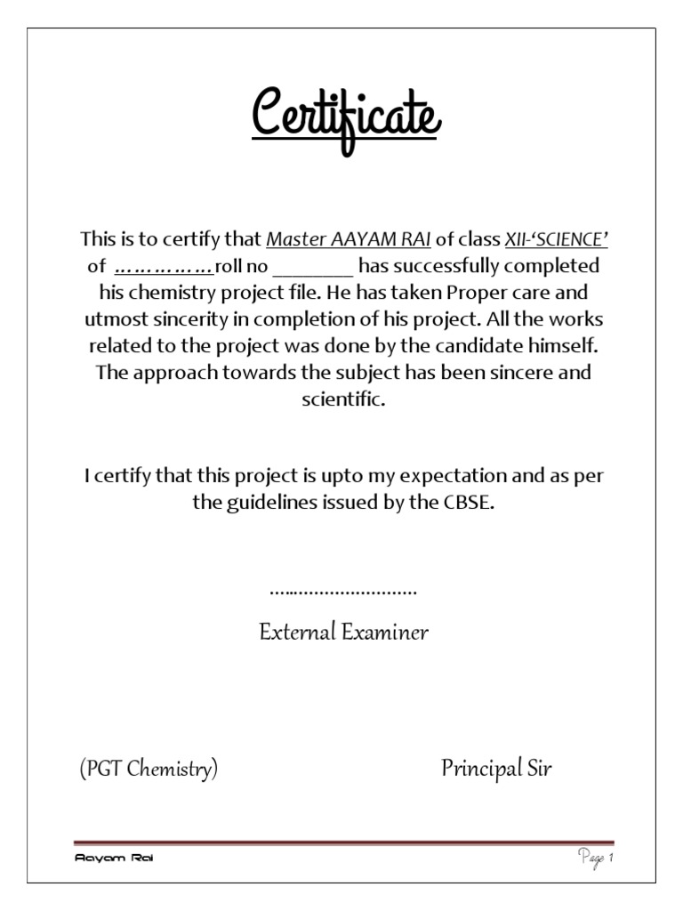 How To Write Certificate Section For Class Xii School Project Study Mumbai - Sample certificate of project report this is to certify that the project entitled, project title submitted by your name in partial fulfillment of the requirements for the award of name of diploma/degree in name of stream at the name of institution is an authentic work carried out by him under my supervision and guidance.